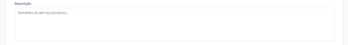 Campo livre para adicionar observações internas ou detalhes do serviço/produto.