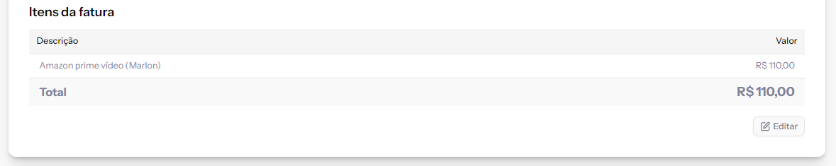 Editar os itens ou valores da fatura.