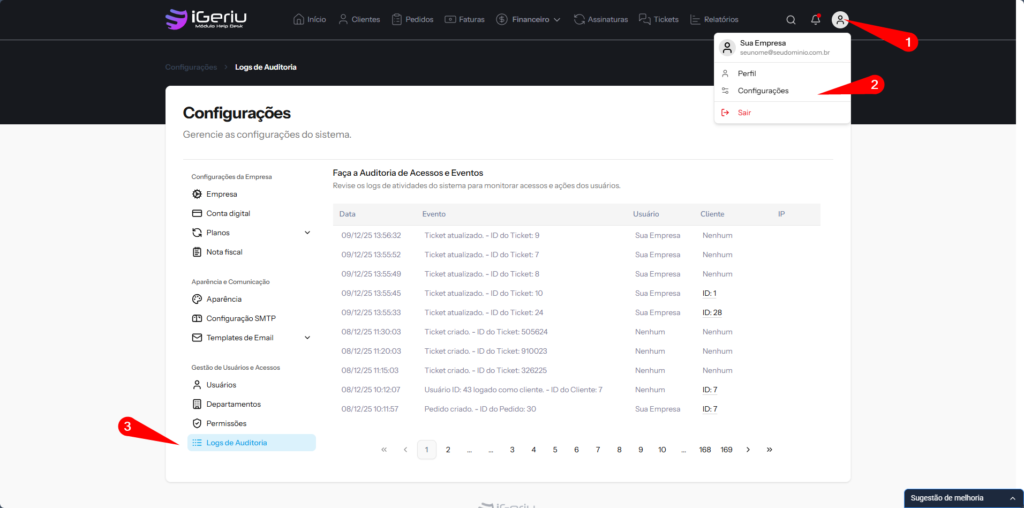Os logs de auditoria são essenciais para manter a transparência e a segurança do sistema. Eles permitem acompanhar todas as ações realizadas, facilitando o controle interno, a identificação de problemas e a proteção dos dados. Mantê-los ativos e monitorados garante um ambiente mais confiável para toda a operação.