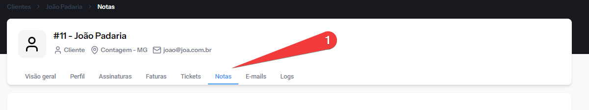 A aba Notas internas é fundamental para manter o histórico do relacionamento organizado dentro do Dashboard do Cliente.