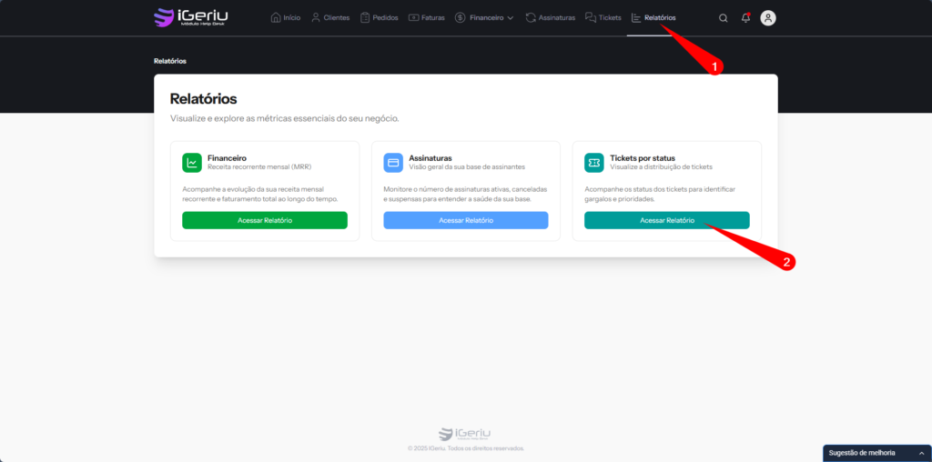 Relatórios → Tickets por Status